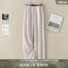 IHIMI海谧莱赛尔亚麻高腰直筒裤女2025夏季新款阔腿裤西装休闲裤