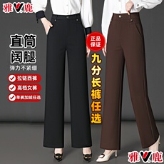 雅鹿裤子女士春秋新款西裤直筒裤中年妈妈裤子西装裤窄版阔腿裤50