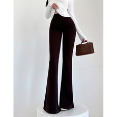 杏色高腰垂感不贴腿微喇西装裤女2026春季新款弹力显瘦喇叭休闲裤