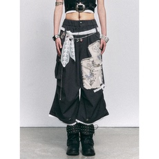 失落后花园轻亚复古蕾丝印花贴布宽松休闲阔腿西装中裤八分裤女