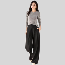 夏莫卡高智灰色西装裤女新款极简主义窄版阔腿天丝羊毛直筒裤9733