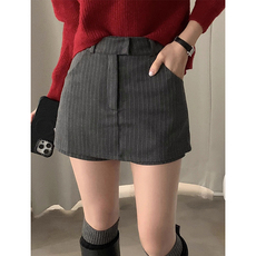 韩国chic秋冬复古小众高腰百搭显瘦休闲竖条纹A字裙裤西装短裤女