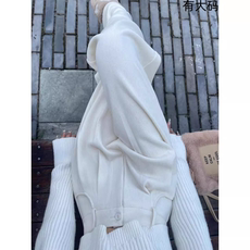 OVV秋冬新款女装针织羊毛无腰橡筋直筒休闲套装西服裤子