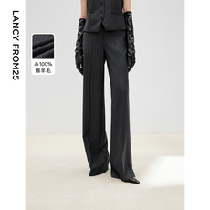 朗姿美丽诺羊毛复古雅致微喇西装裤气质通勤风裤子2025年冬季新款