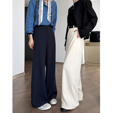 白色阔腿裤女春秋高腰垂坠感直筒显瘦绵羊毛松弛感拖地天丝西装裤