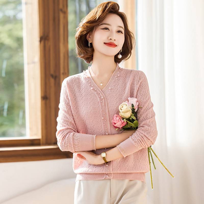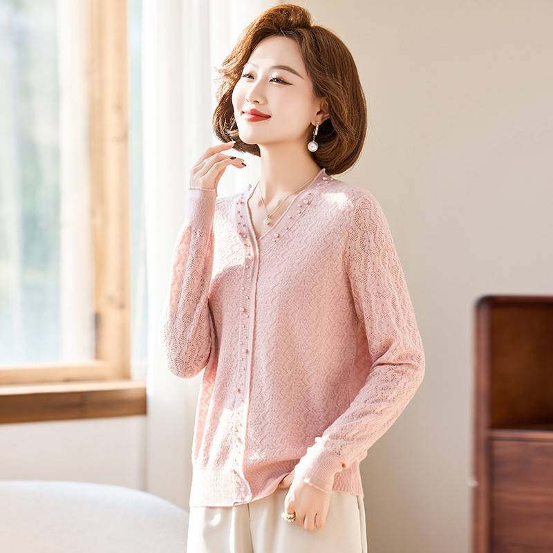 妈妈秋装洋气打底衫中年女装2024新款长袖T恤中老年春秋针织上衣