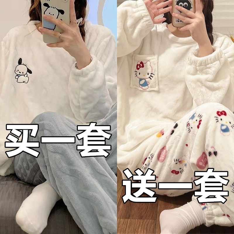 睡衣女冬珊瑚绒韩版学生可爱长袖秋冬季加厚法兰绒大码家居服套装