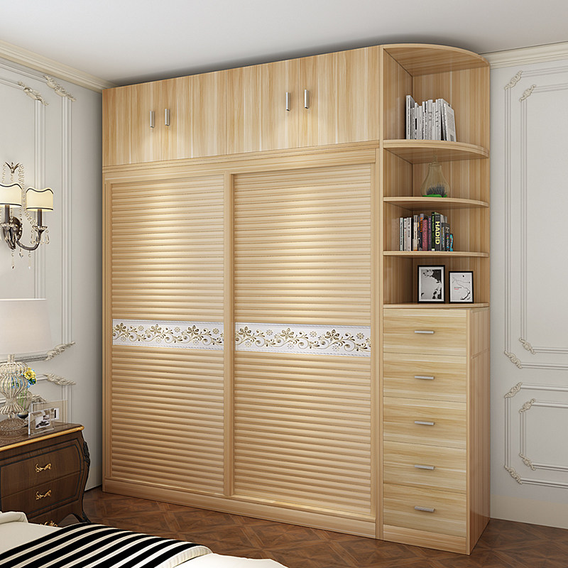 马六甲实木生态板衣柜松木衣柜 推拉门移门卧室整体组合简约现代