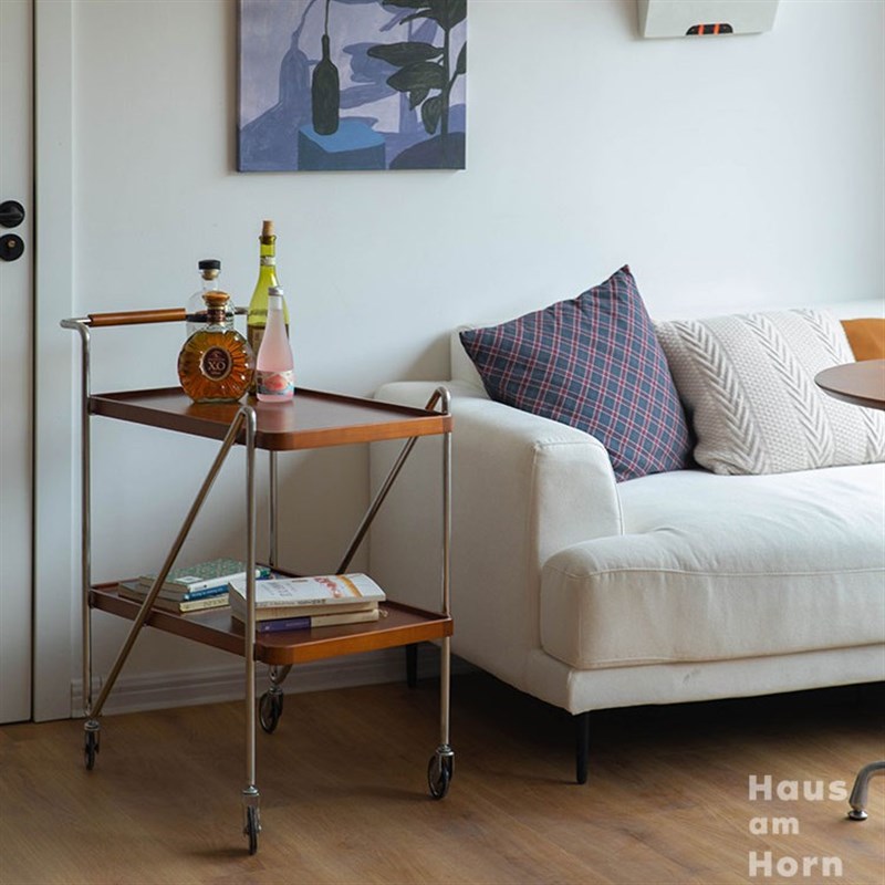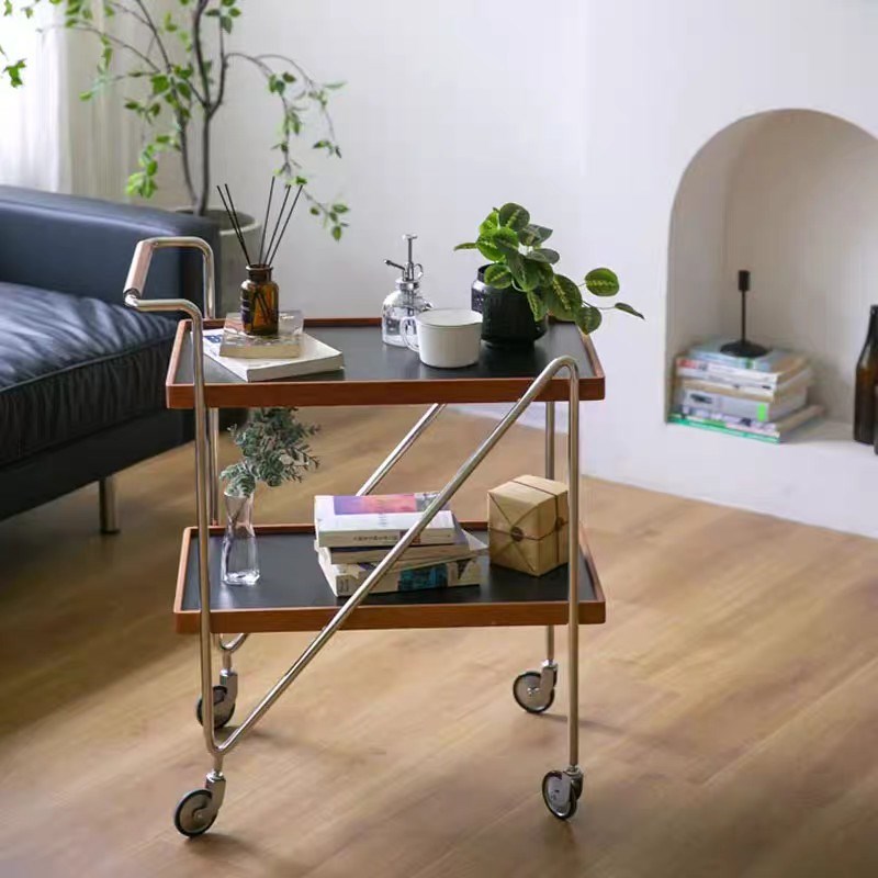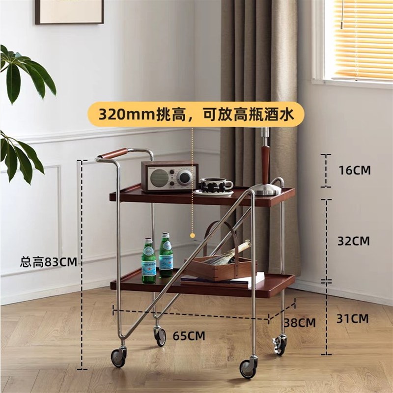 复古实木小推车简约沙发边几可移动茶几家用客厅餐边柜收纳置物架