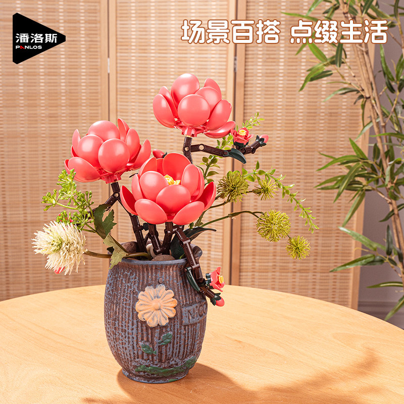 潘洛斯2025新款积木花永生玫瑰花束拼装玩具摆件情人节送生日礼物