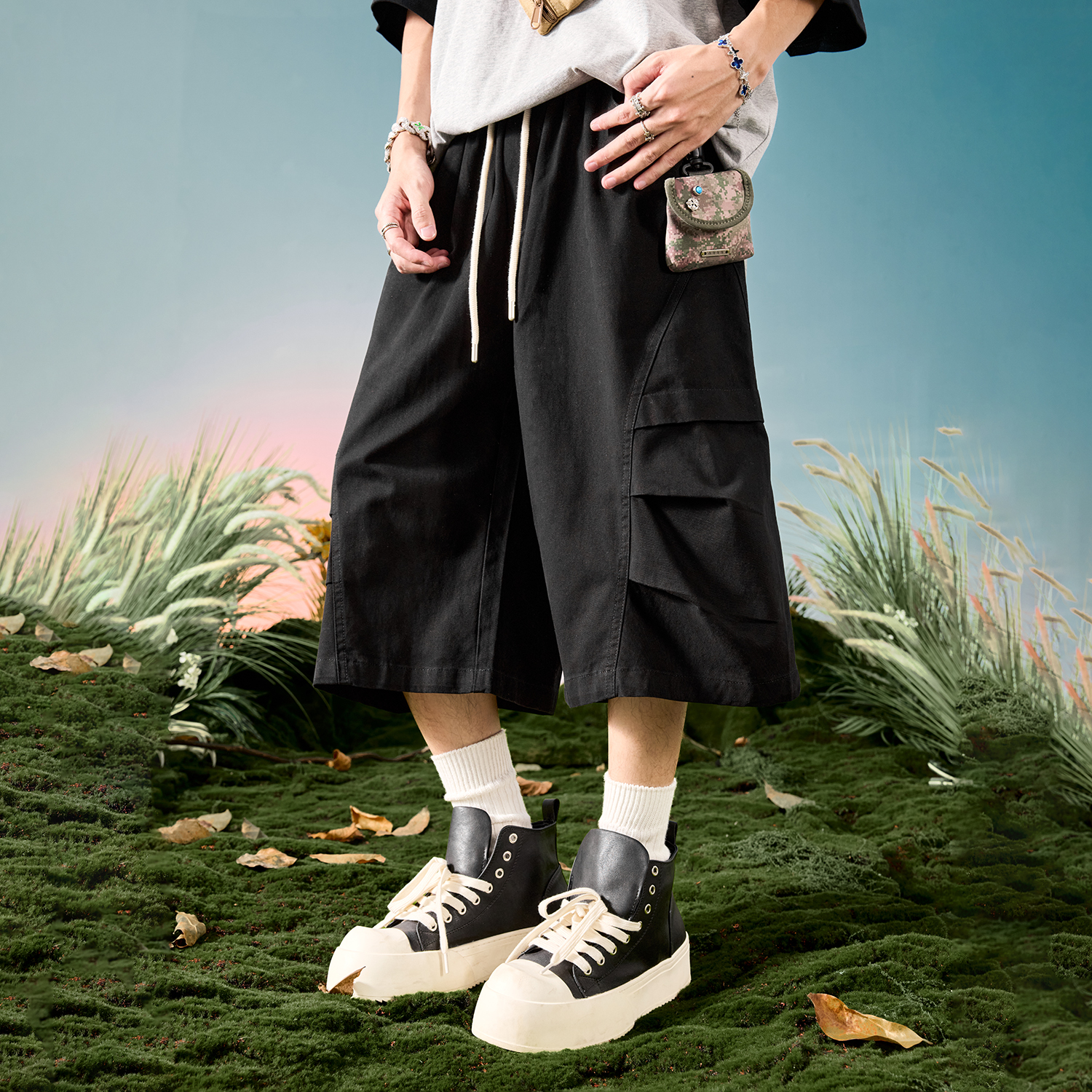 Nuthink美式复古工装七分裤短裤潮牌松紧休闲薄款2025夏季新款男