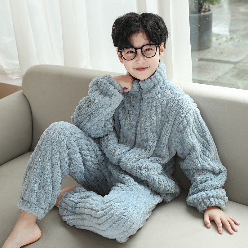 儿童装男童睡衣秋冬款加绒冬季加厚珊瑚绒法兰绒男孩家居服中大童