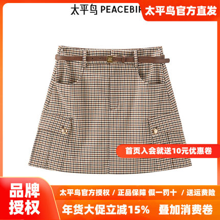 【商场同款】太平鸟女装年秋季新款格子短裙半身裙A1GEE3437