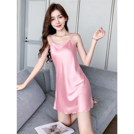 吊带睡裙女薄款冰丝无袖短裙真丝绸性感韩版睡衣裙家居服夏季休闲