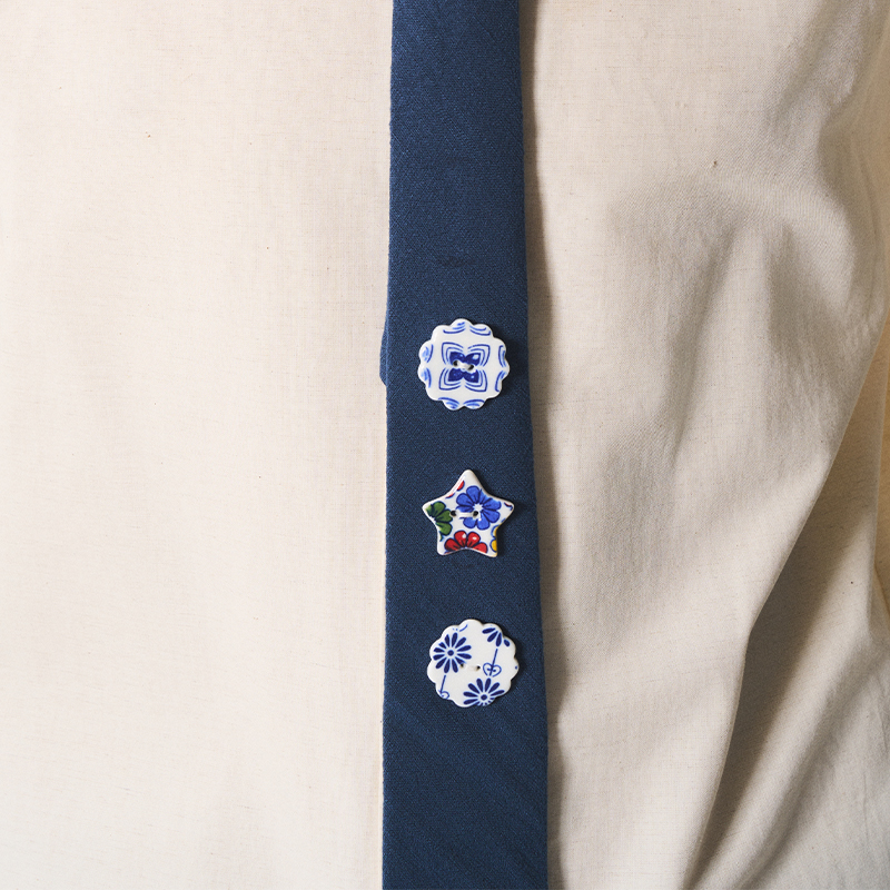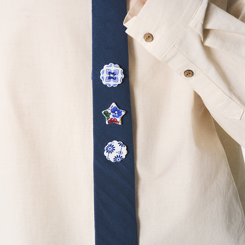 CNEW2026AW棉麻民族风陶瓷扣子手工领带搭配领带