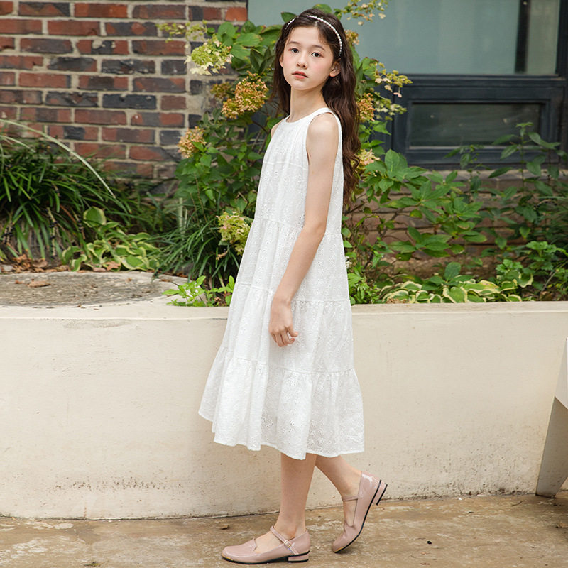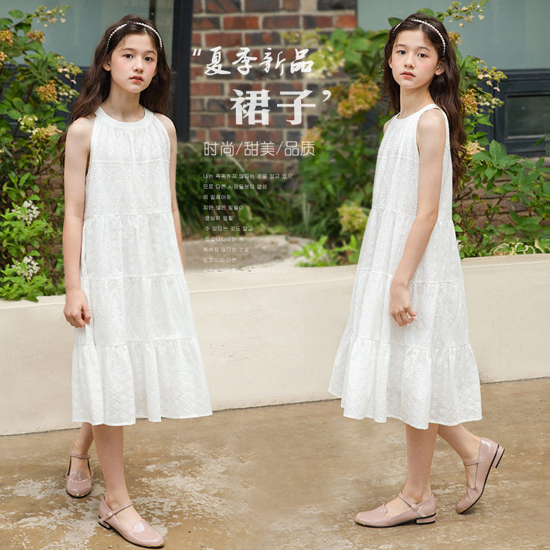 儿童吊带裙白色女童夏装新款长裙韩版亲子洋气大童女孩公主连衣裙