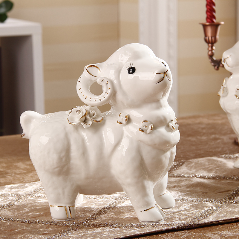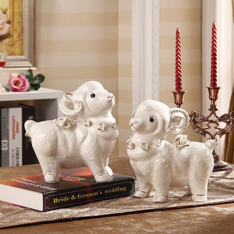 欧式陶瓷动物羊摆件家居客u厅办公室乔迁装饰品结婚庆礼物工艺品
