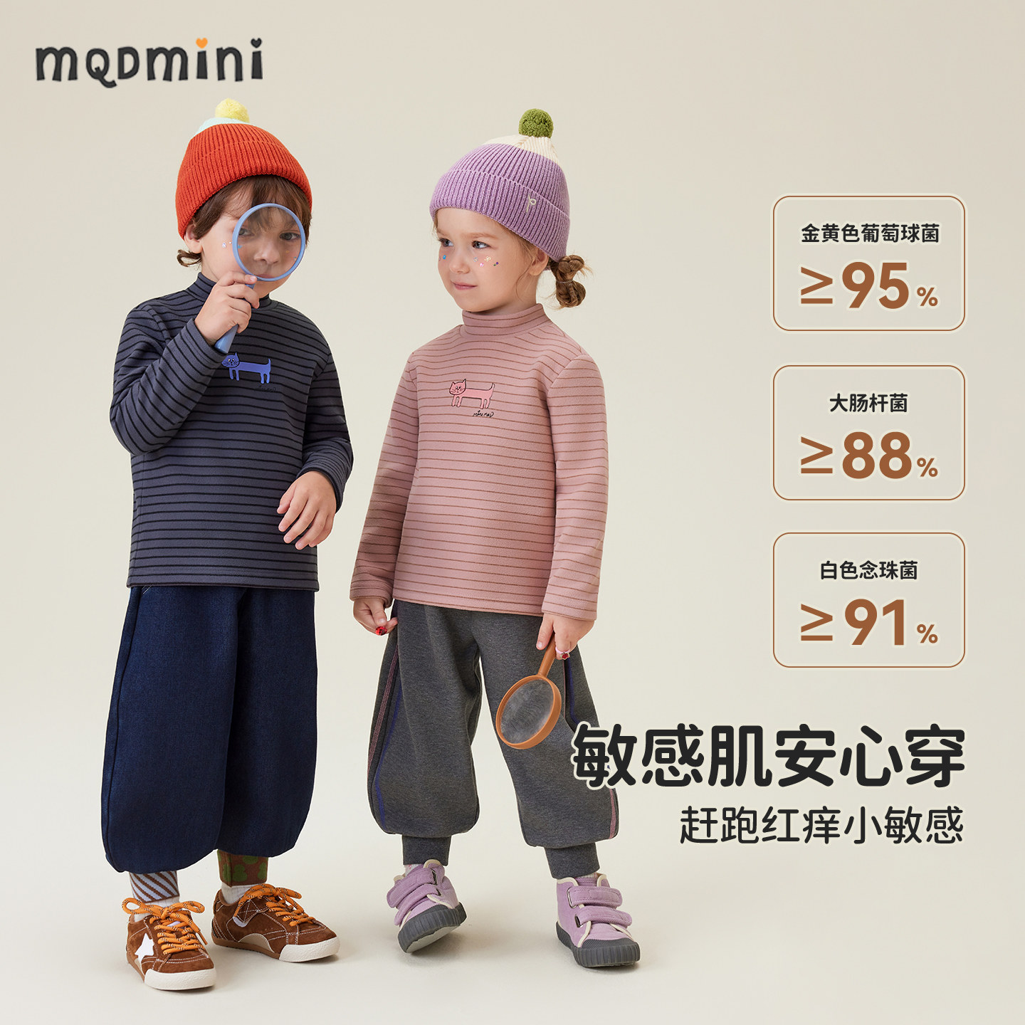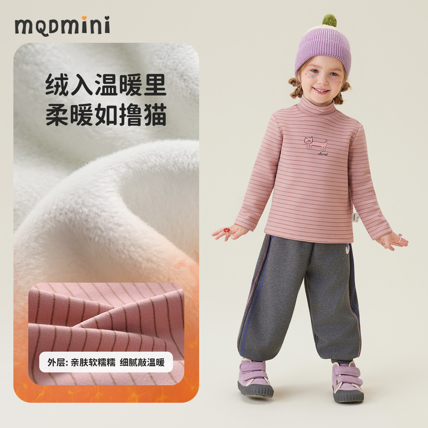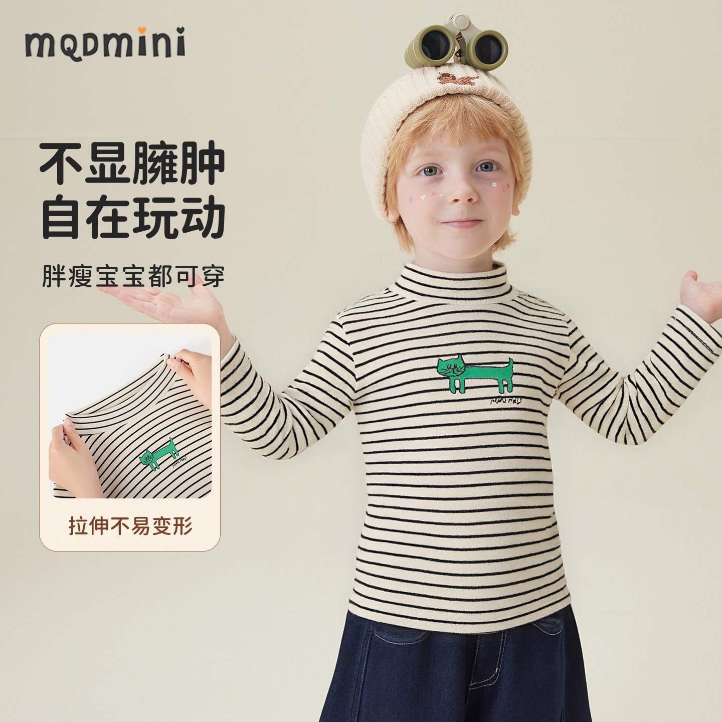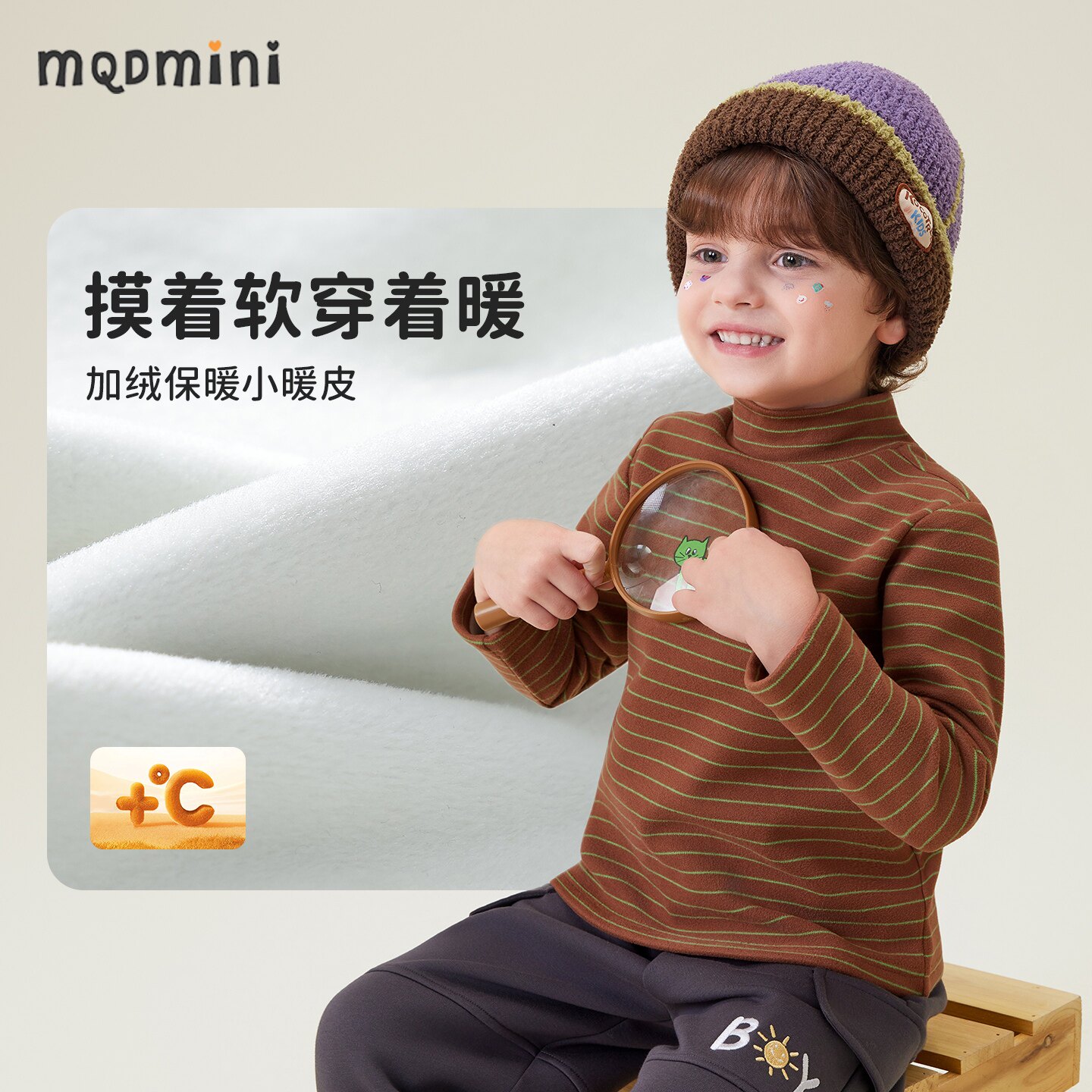 MQDmini儿童加绒半高领打底衫2025新款冬男童德绒长袖T恤上衣内搭