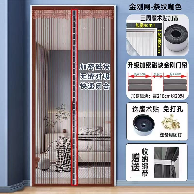 豪华高档金刚网夏季防蚊磁性纱门帘免打孔魔术贴新款家用磁吸门帘
