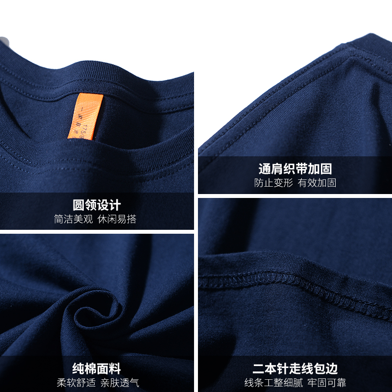 240g美式复古重磅厚实纯棉潮牌宽松宝蓝色纯色圆领短袖T恤男女款