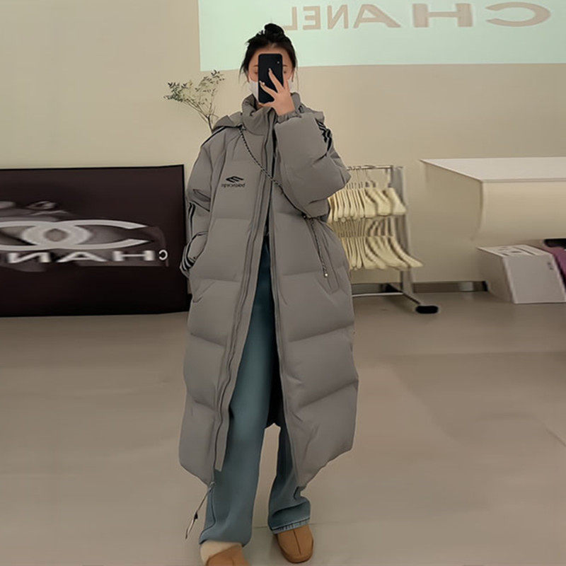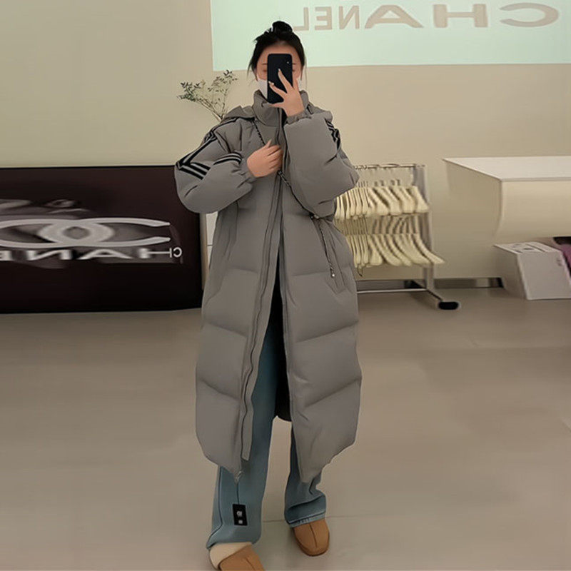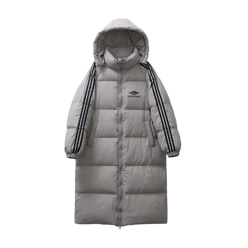 超好看长款三条杠情侣连帽羽绒服潮2025年冬季新款白鸭绒保暖外套