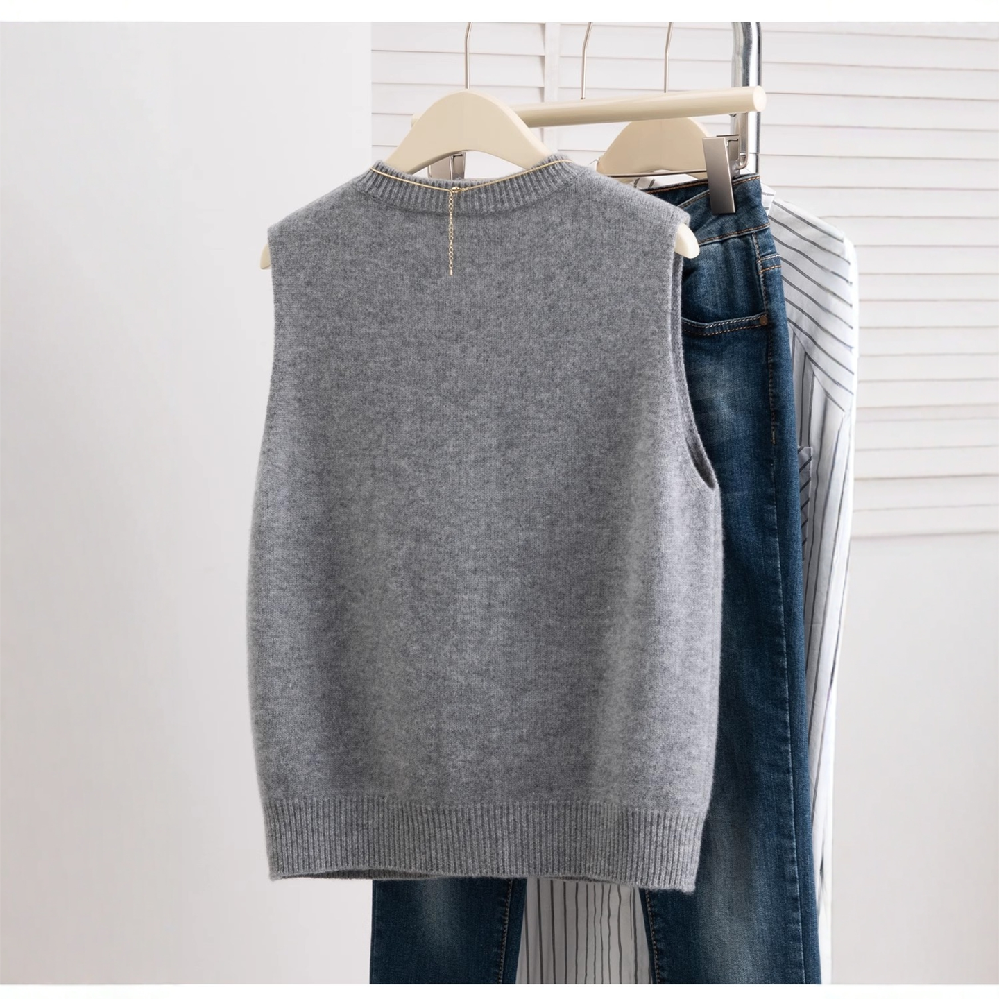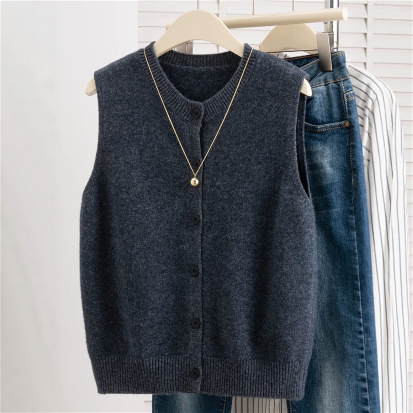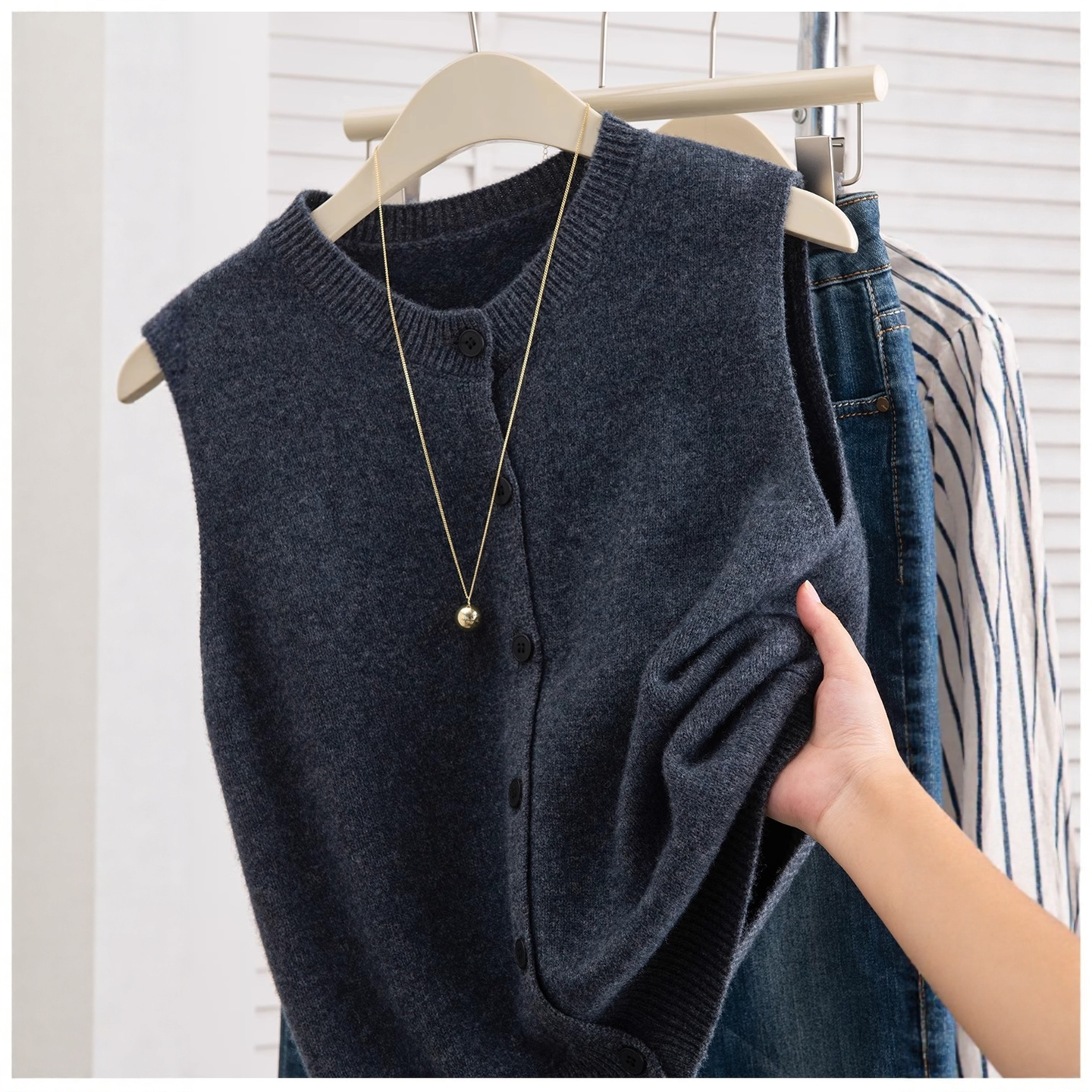 韩版针织开衫无袖毛衣马甲背心女2025年秋冬圆领宽松叠穿外搭上衣