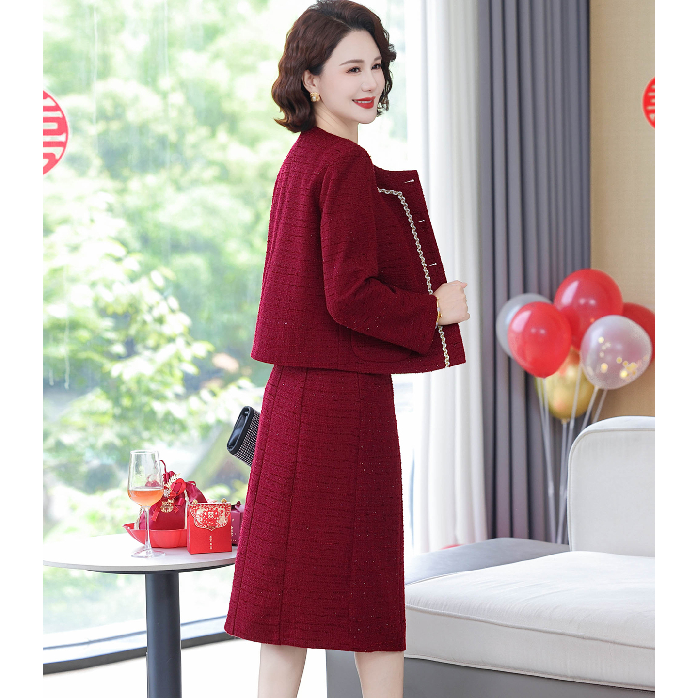 喜卉婚宴礼服妈妈秋装2025新款高贵两件套中老年女装春秋连衣裙子