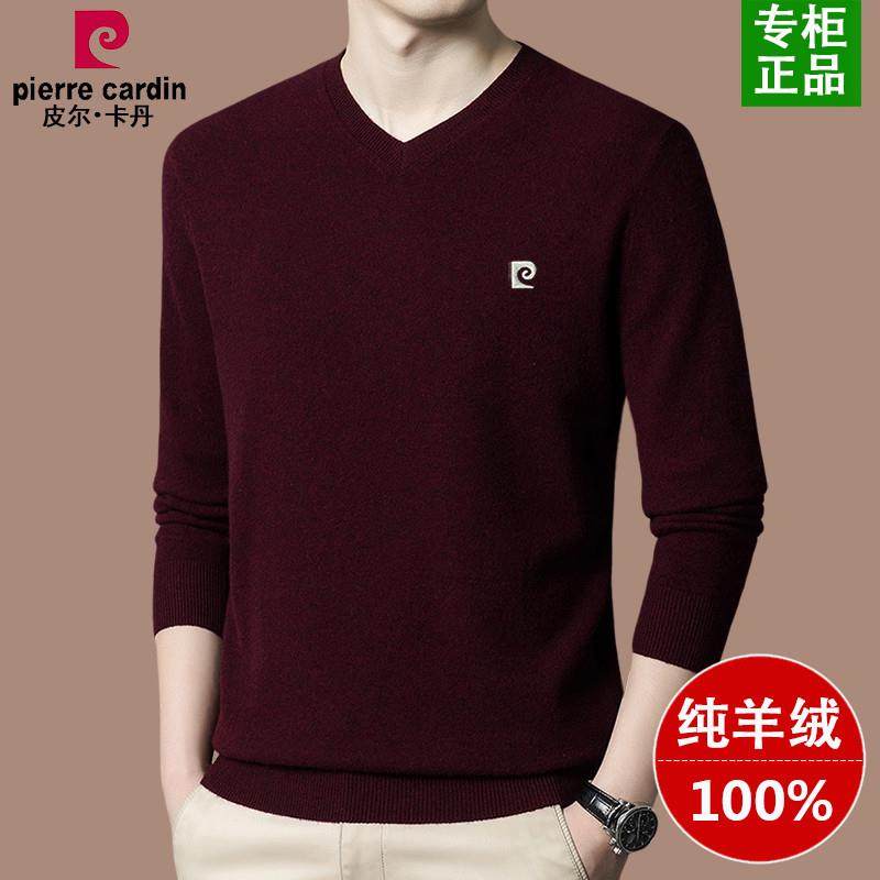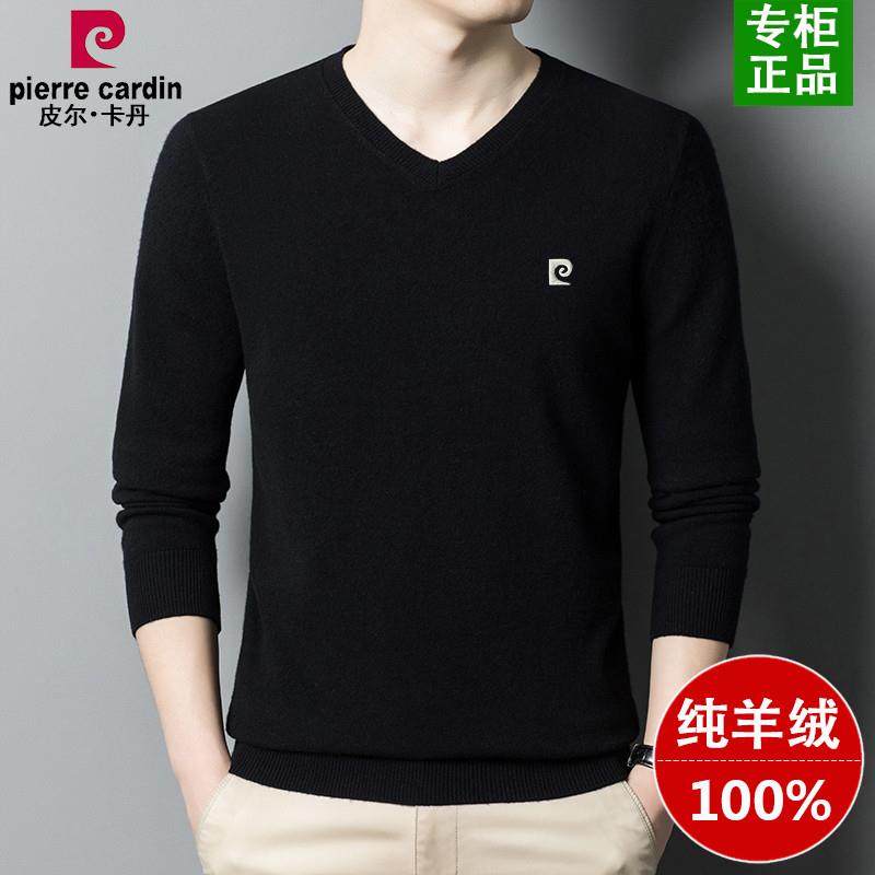 皮尔卡丹秋冬V领100%纯羊绒衫男
