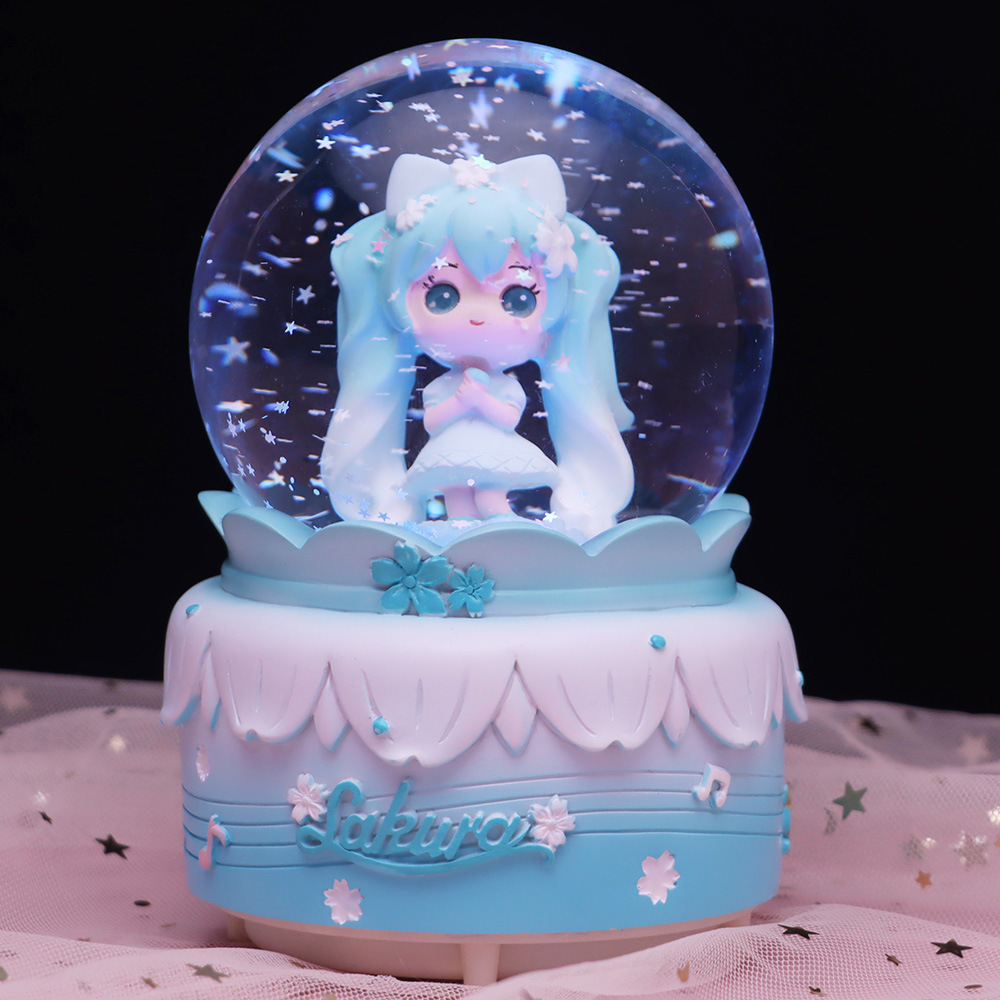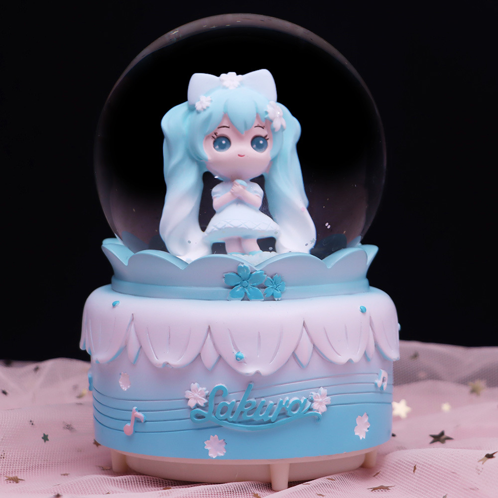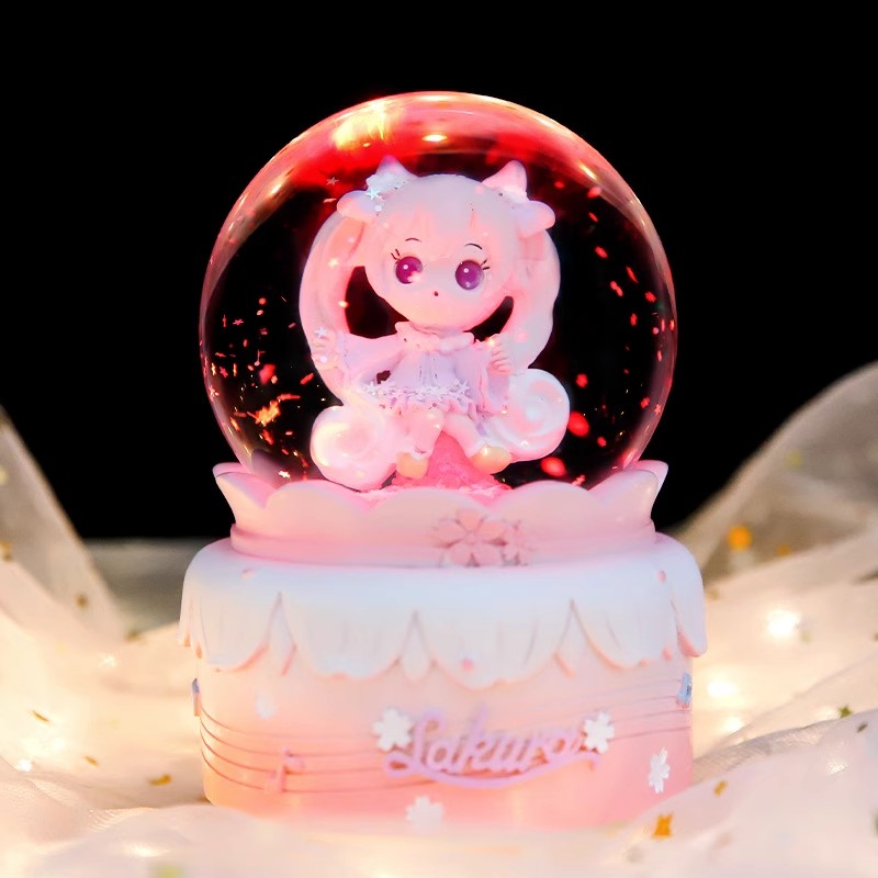 彩灯飘雪花卡通樱花少女水晶球音乐盒旋转八音盒公主儿童生日礼物