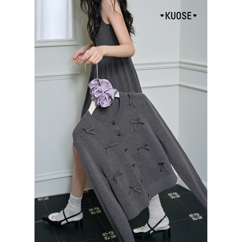 阔色针织衫开衫背心裙两件套装25秋季新款女上衣毛衣连衣裙短裙灰
