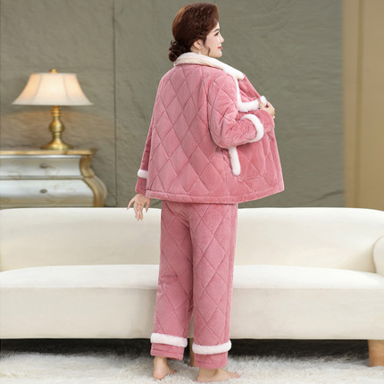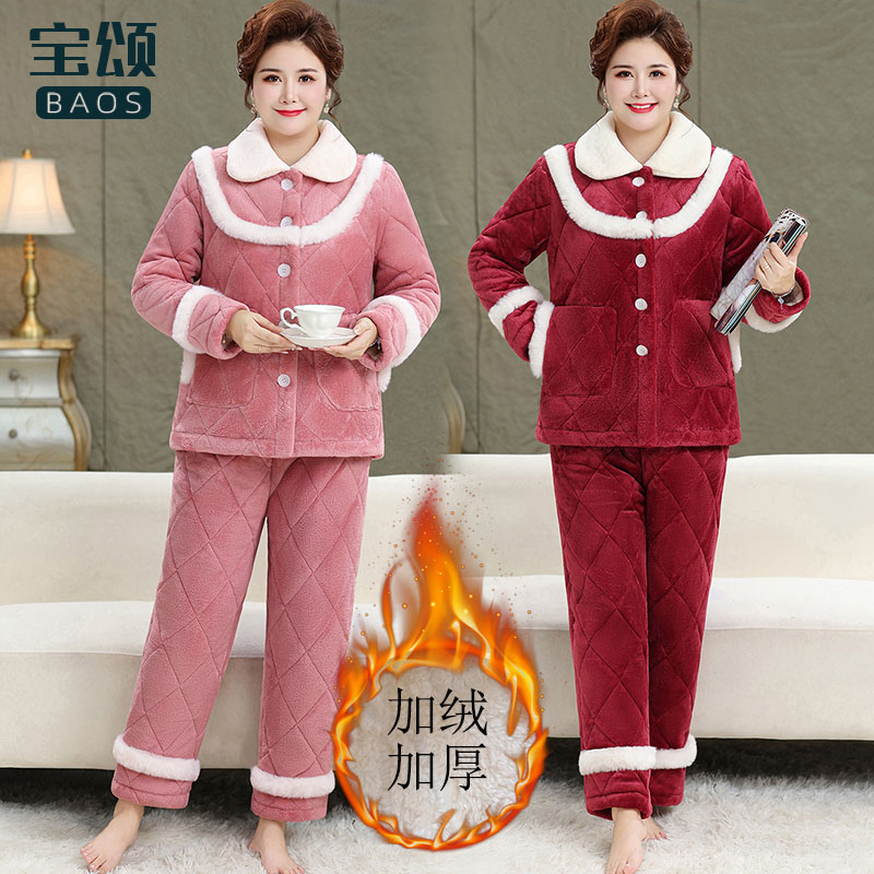 200斤中老年人保暖加绒胖妈妈法兰绒睡衣套装加肥加大码女装冬装