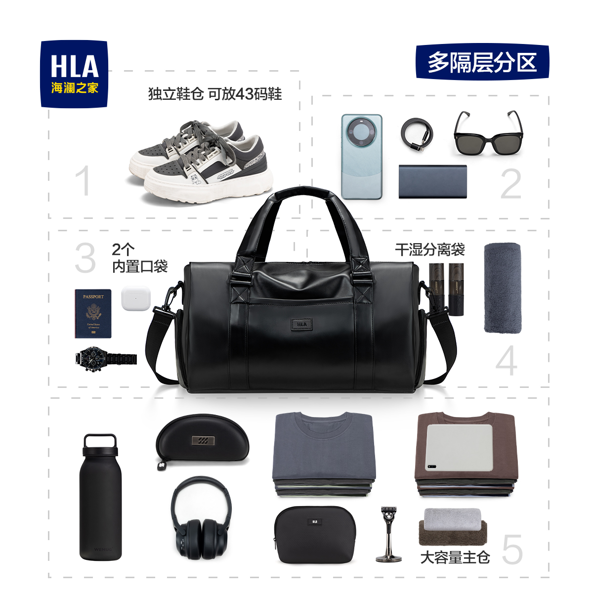 HLA/海澜之家短途旅行包男轻便大容量运动健身手提旅游包行李袋