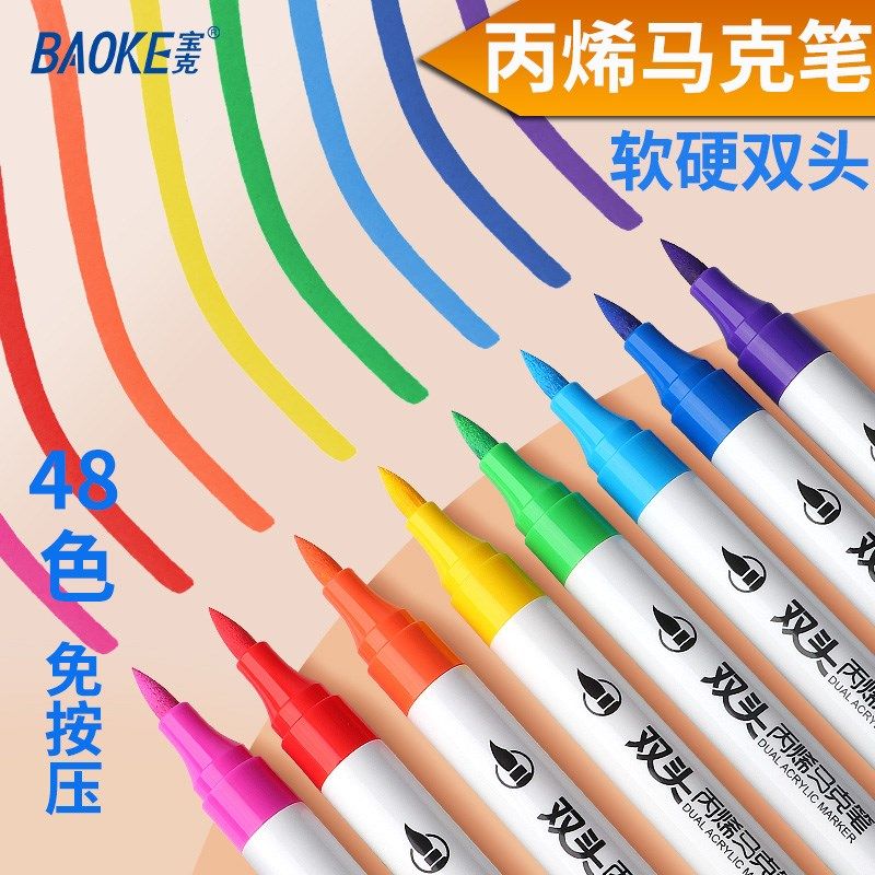 宝克软硬双头丙烯马克笔儿童不透色纸笔防水手绘diy水彩笔可水洗