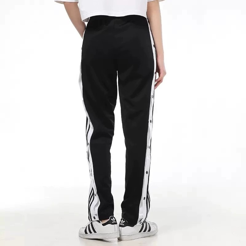 阿迪达斯三叶草女裤宽松阔腿裤三条纹直筒裤侧排扣运动长裤IU2519