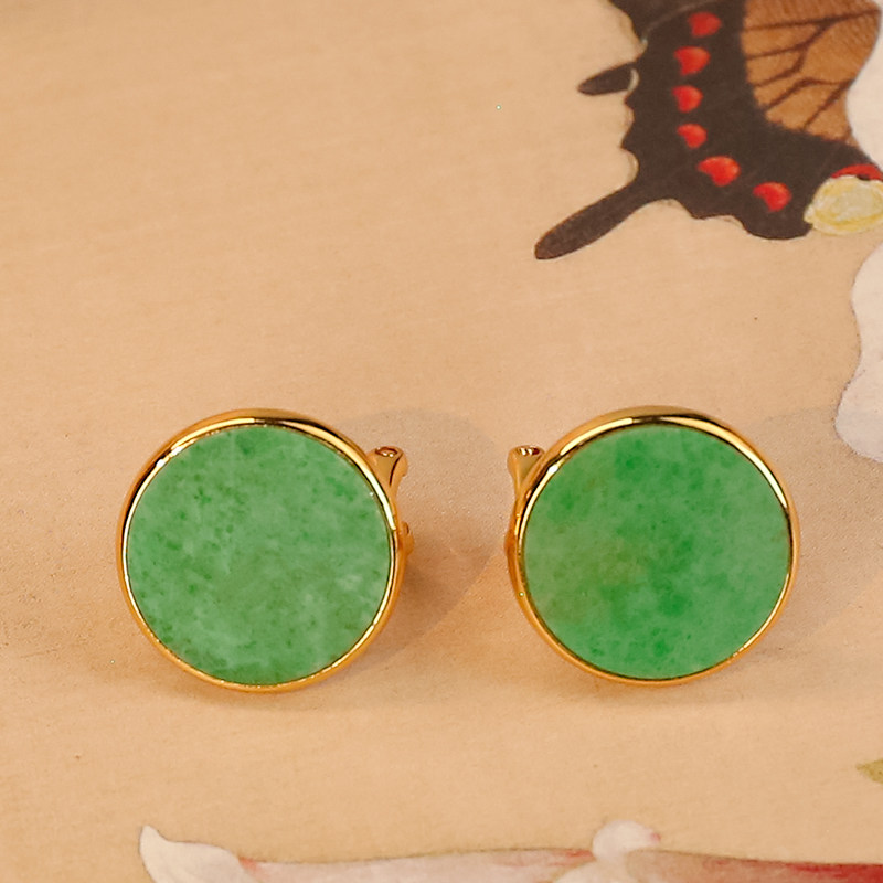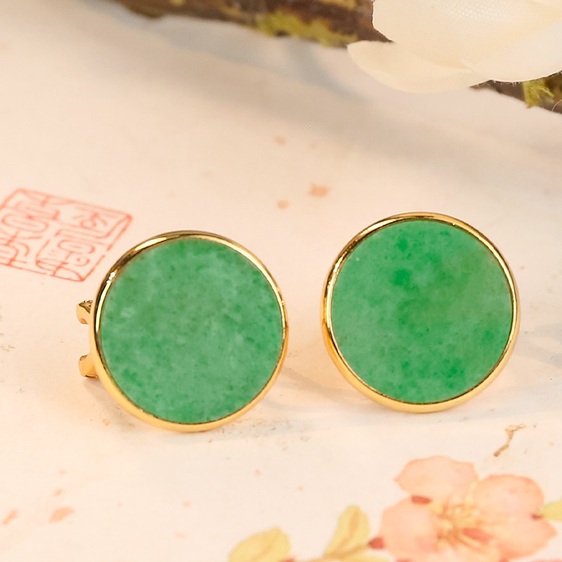 天然翡翠A货经典简约阳绿色满绿小圆牌耳拍耳钉免耳堵