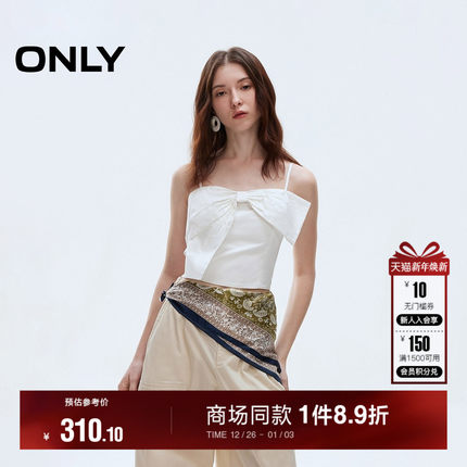 ONLY2025夏季新款甜酷辣妹吊带立体蝴蝶结收腰短款修身雪纺衫女