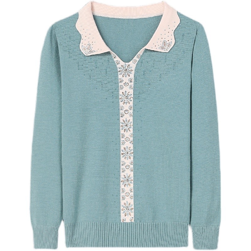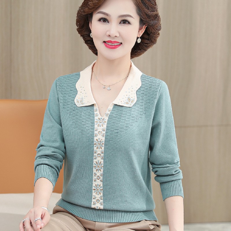 妈妈秋装上衣洋气针织小衫中老年女装大码春秋薄款遮肚打底衫长袖