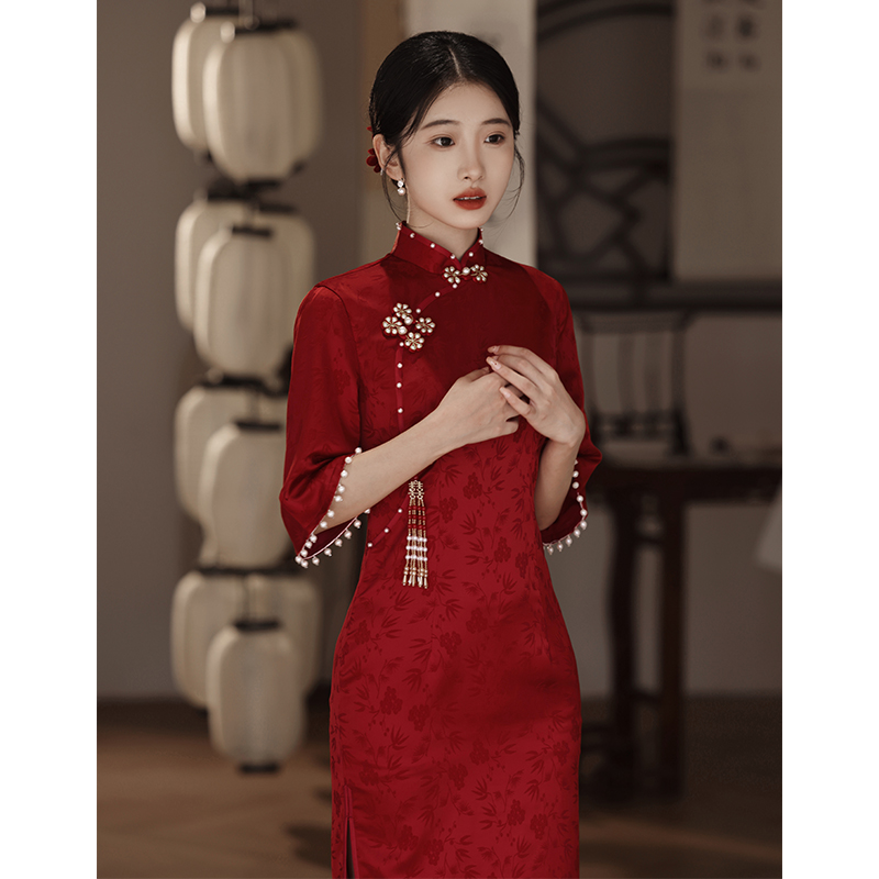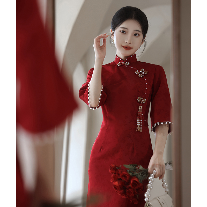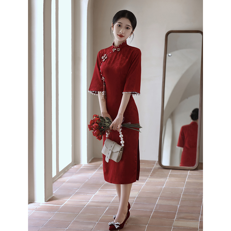 改良旗袍敬酒服新娘2025新款红色新中式结婚订婚礼服连衣裙小个子