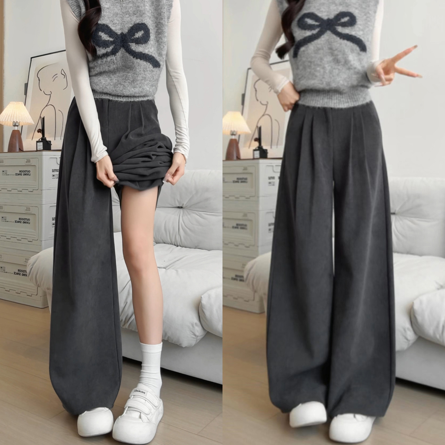 裤子新款2025加厚阔腿裤雪尼尔西装裤秋冬季女灰色休闲加绒灯芯绒