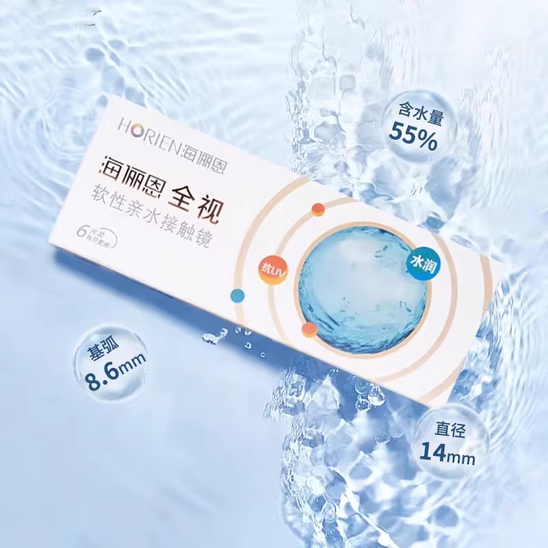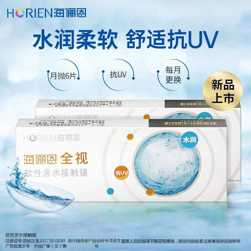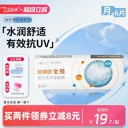 海俪恩全视隐形眼镜月抛6片高清透明近视隐形眼镜水润舒适正品