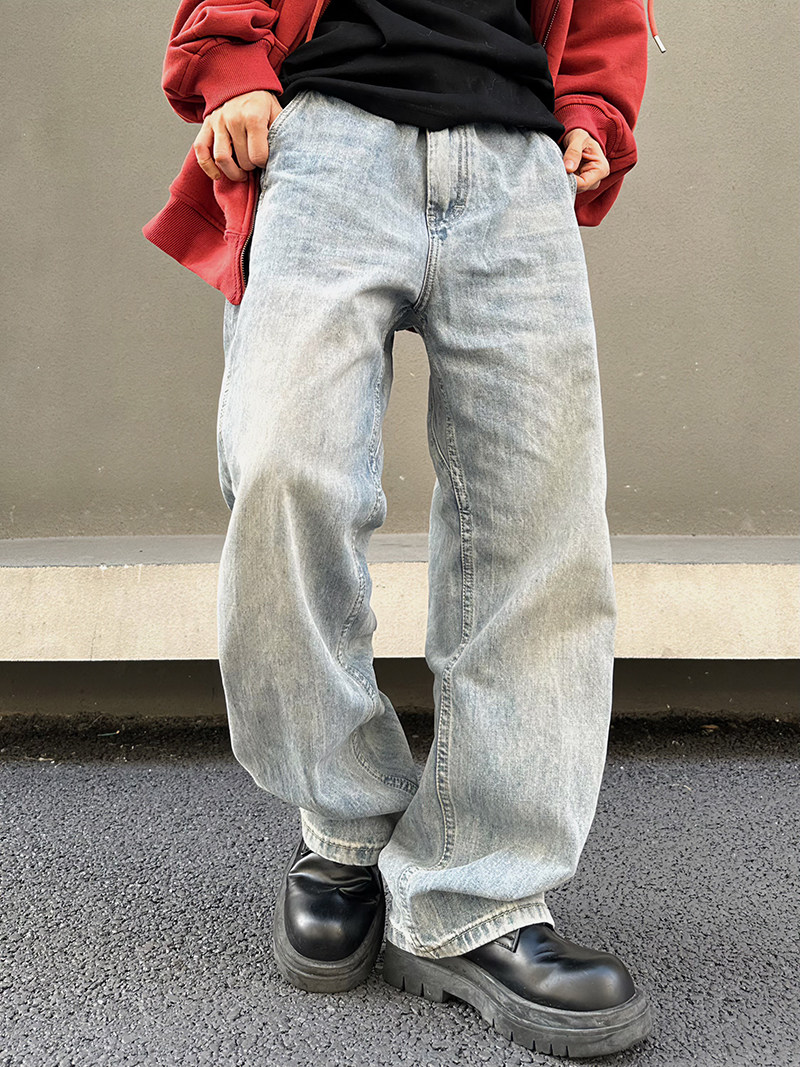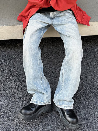 XBRO美式休闲丹宁水洗直筒显瘦牛仔裤长裤百搭大码四季裤子男女潮