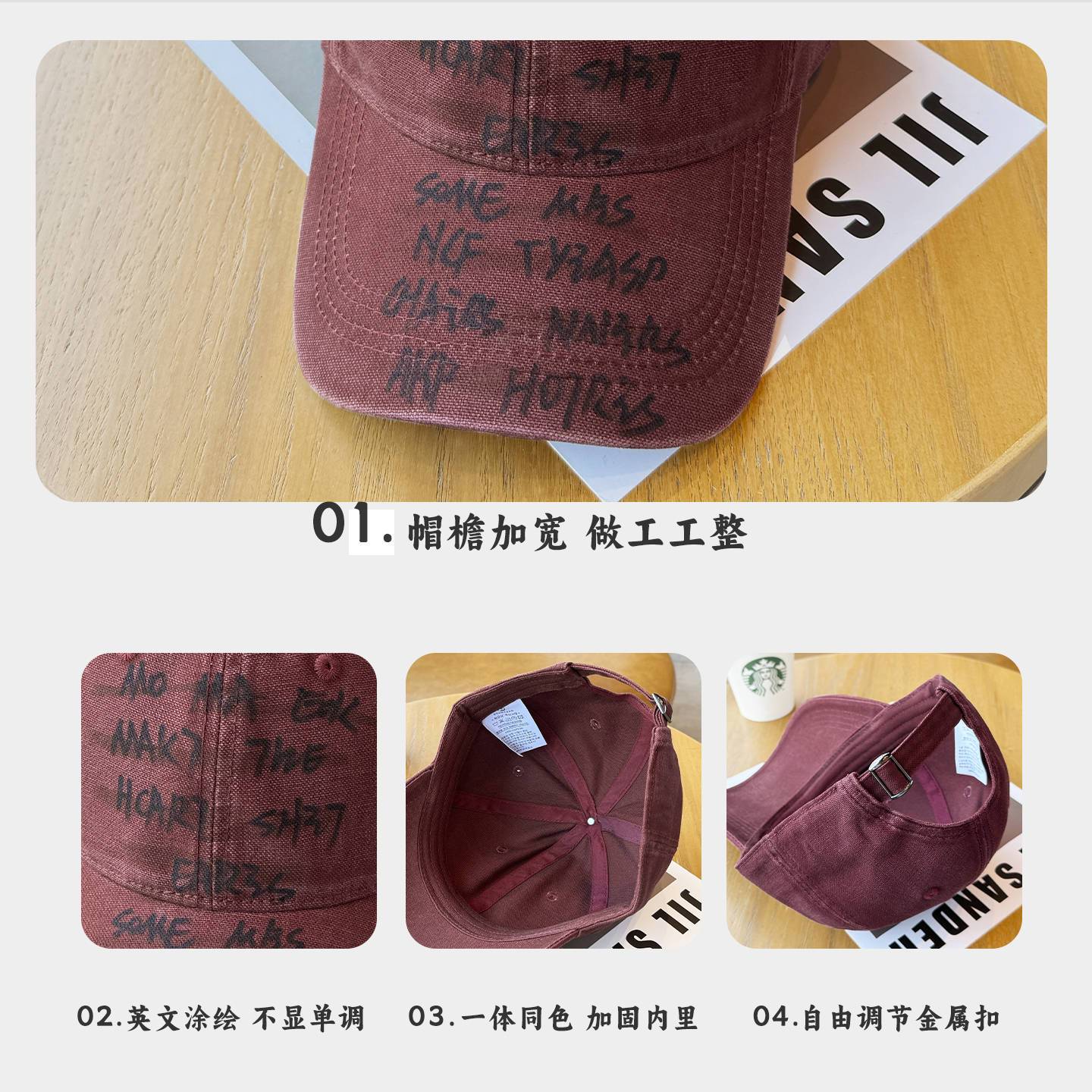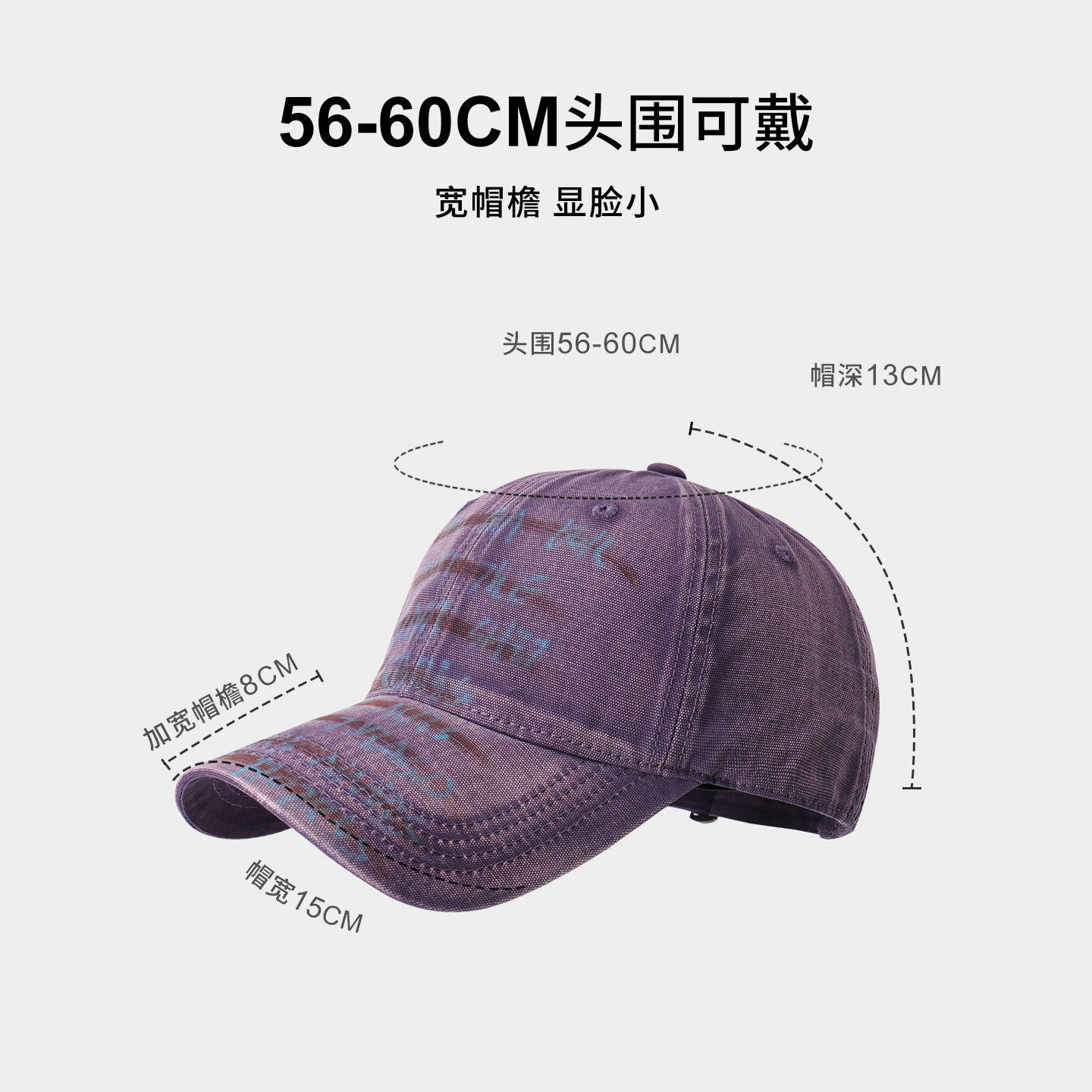 字母涂鸦棒球帽女水洗2025新款美式鸭舌帽户外宽帽檐显脸小男帽子