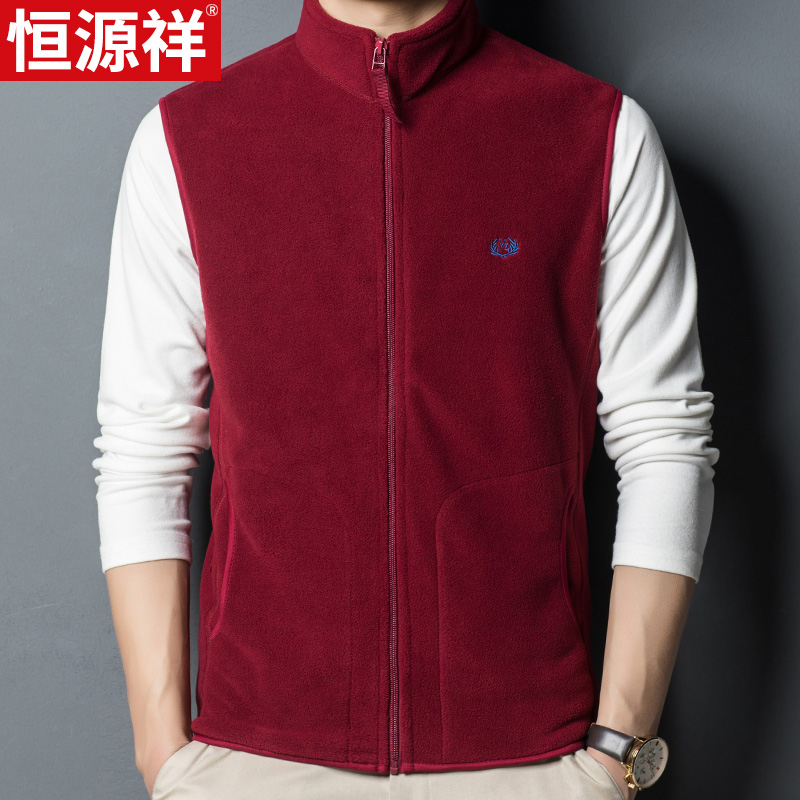 恒源祥摇粒绒马甲男款秋冬保暖无袖衣服抓绒背心春季外套男的马夹