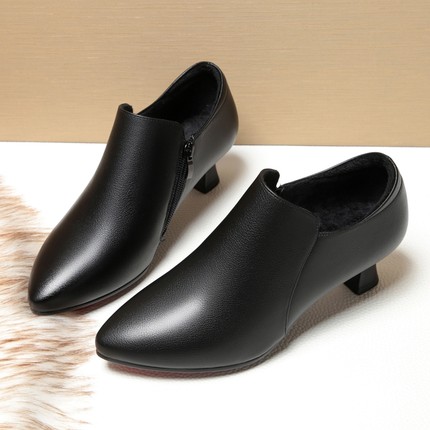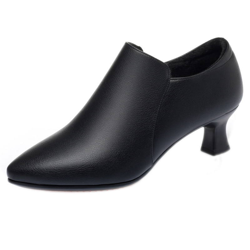 他她女孩空姐加绒深口皮鞋工作鞋女小跟单鞋细跟高跟职业面试正装