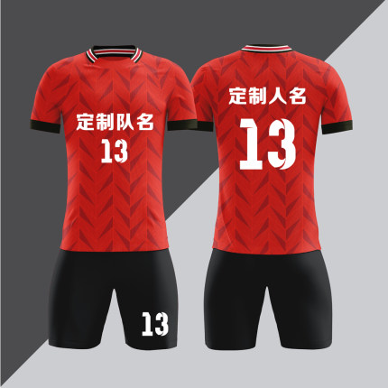 全身数码定制印刷成人儿童足球服套装球衣比赛训练队服LBZ083红色