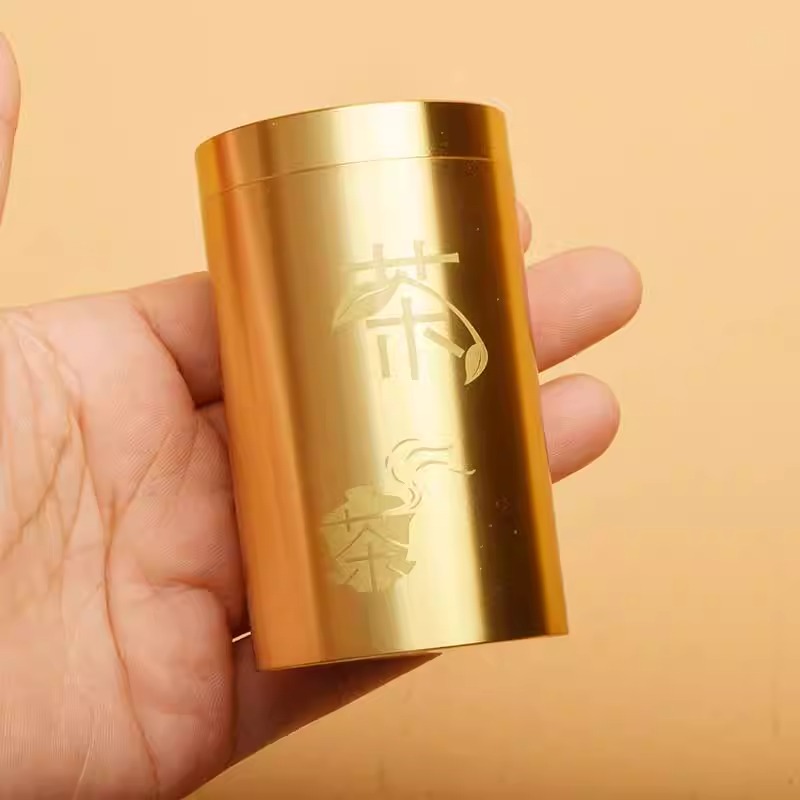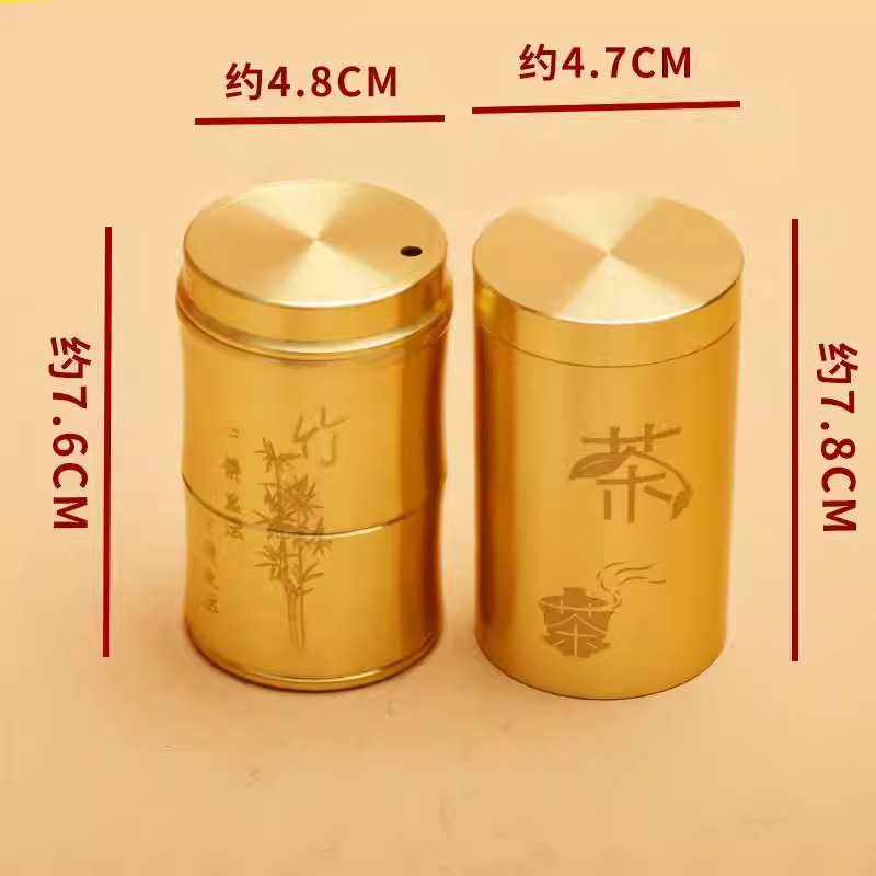 纯黄铜牙签筒普洱茶叶罐空罐便携小号茶罐密封罐随身盒旅行储存罐