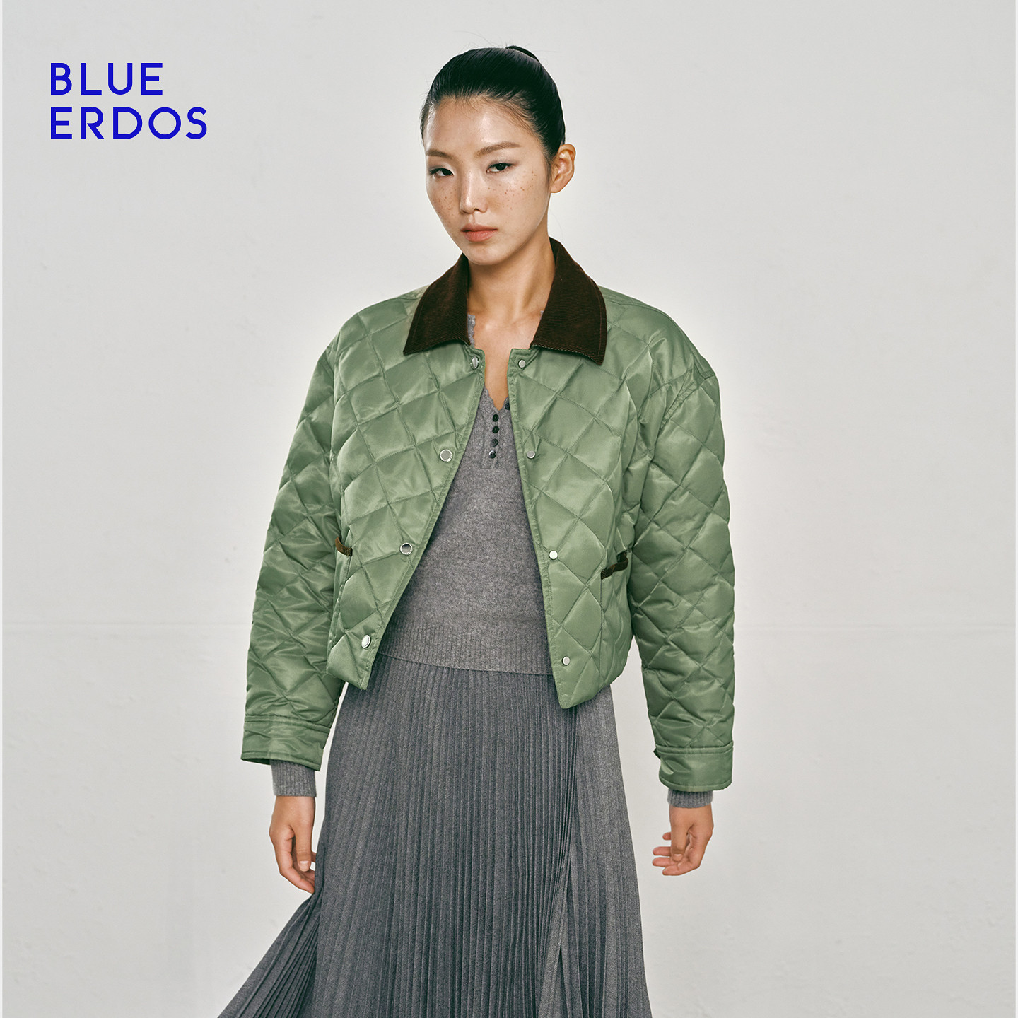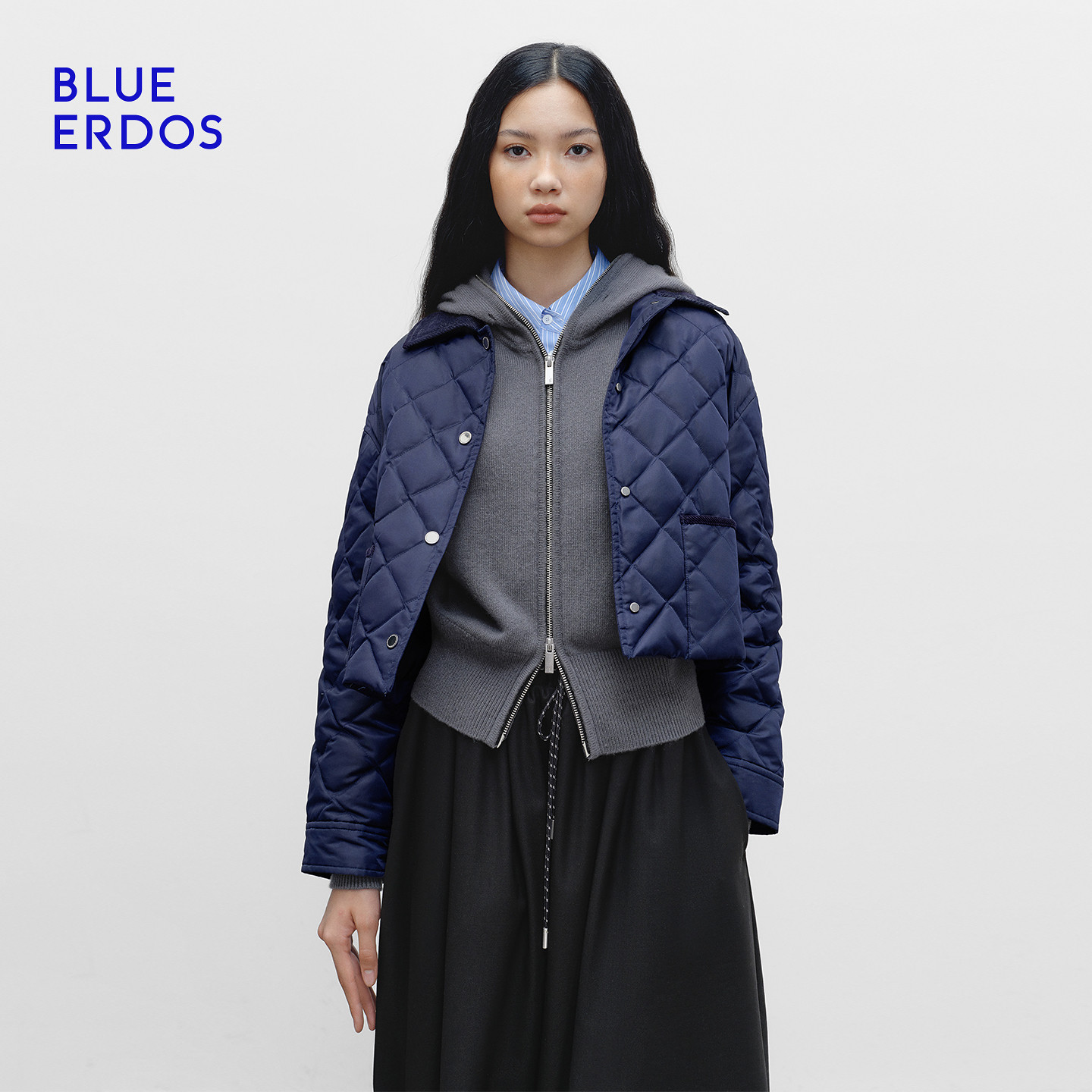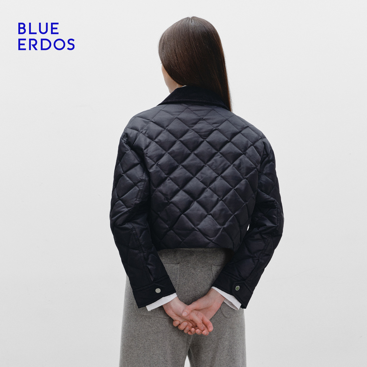 BLUE ERDOS 冬季新品复古休闲拼接领绗缝夹克鹅绒羽绒服外套女