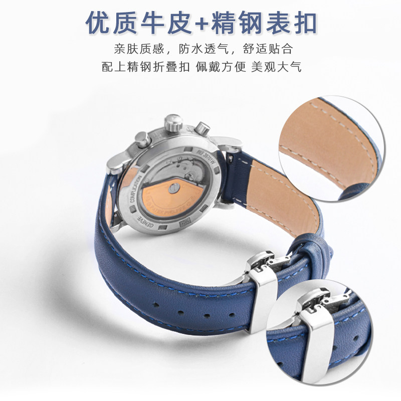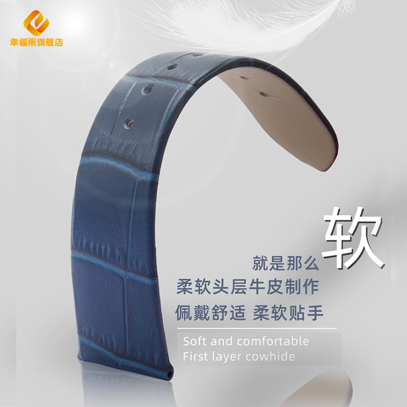 男士蓝色真皮手表带适配天王 罗西尼 雷诺 卡罗莱头层牛皮18 20mm