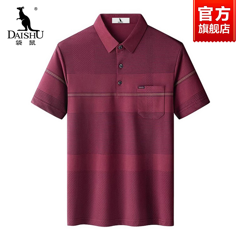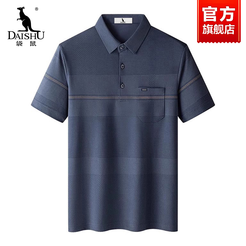 袋鼠polo衫男夏季薄款翻领短袖条纹t恤中年爸爸装上衣父亲节礼物