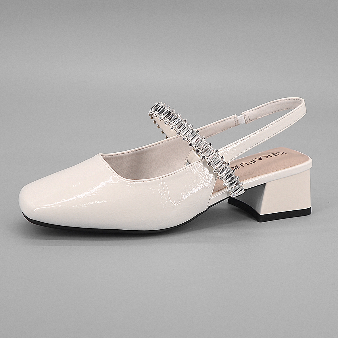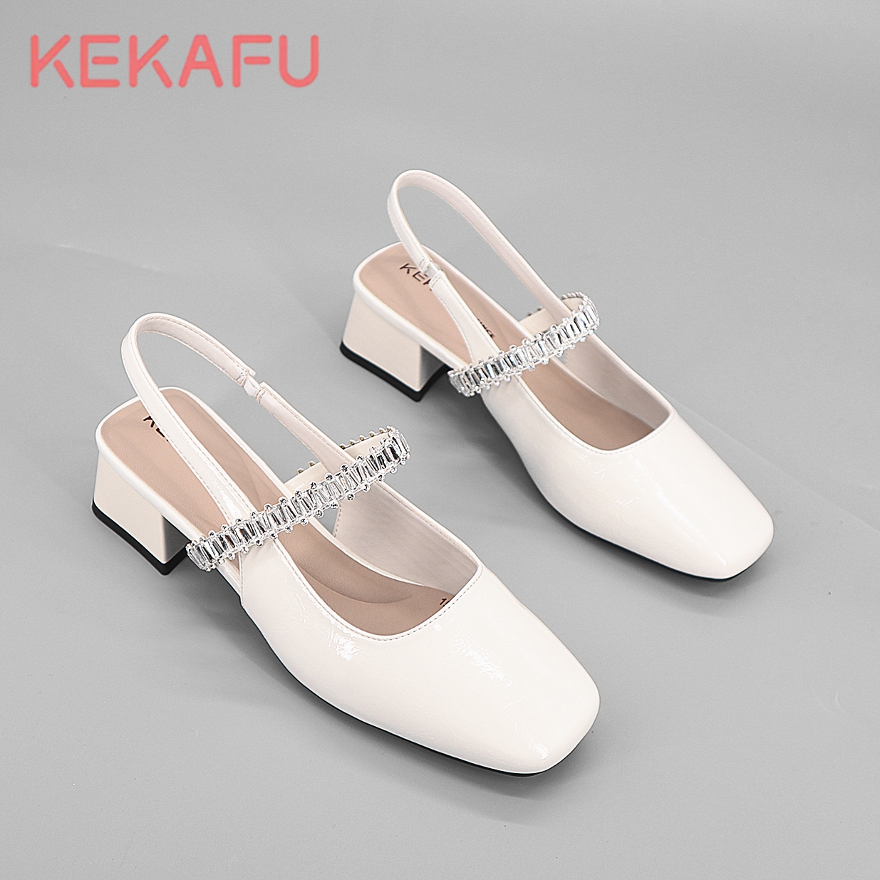 珂卡芙水钻方头凉鞋女2025夏季新款外穿粗跟时尚百搭一字带凉拖鞋